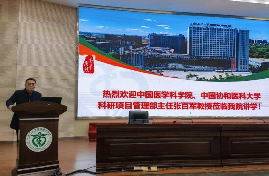 为持续贯彻落实南华医院“科技强院”战略,提升科技创新能力、科研写作水平和人才培养质量,南华医院教学科研部分别于2023年2月15日下午和晚上组织召开了2023年国家自然科学基金申报推进系列活动。会议分别邀请了中国医学科学院、中国协和医科大学科研项目管理部主任张百军教授和南华大学附属第七医院党委书记唐小卿教授进行学术讲座。在院博硕导师、博士、拟申报2023年国自的老师、部分科研骨干和研究生均参加了本次讲座。分管教学科研的党委委员、副院长汤国辉主持本次讲座。