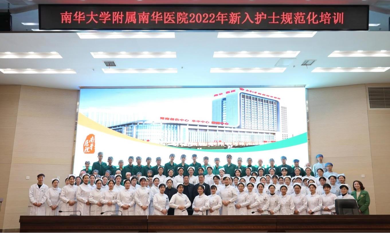 为切实提高护士队伍整体素养和临床护理服务能力,传承和践行南华医院院训和护理文化理念。近日,在院领导的大力支持下,护理部对92名新入职护士开展规范化培训,党委书记周玉生,党委副书记、院长贺军,党委委员、副院长刘龙飞莅临开班仪式,护理部兼护理教研室主任陈莉、护理部副主任赵碧霞、护理教研室副主任邓凤英以及四位片区护士长出席会议。