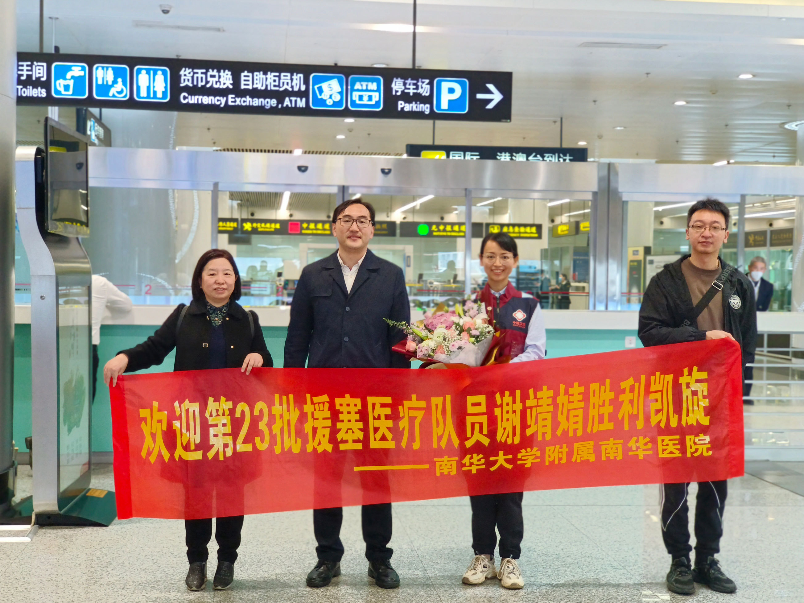 最是一年春好处,恰逢英雄归来时。湖南省派出的中国湖南第23批援塞拉利昂医疗队以生命担当友好使者,用热血铸就忠诚卫士,圆满完成援外医疗任务平安归国。历经32小时的长途跋涉,南华医院谢靖婧同志随医疗队全体成员于3月9日上午9:30分平安抵达长沙。医院委派代表和家属前往黄花机场接机,向谢靖婧同志圆满完成任务凯旋回国表示热烈的欢迎和诚挚的慰问。