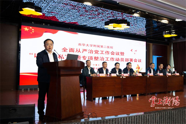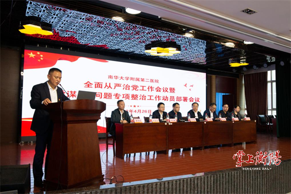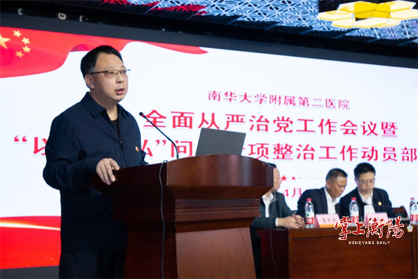 4月26日下午,南华大学附属第二医院举行2023年全面从严治党暨“以学谋私”问题专项整治工作部署会议。会议总结了2022年度全面从严治党、筑牢廉洁根基的成果,并部署了2023年的重点任务。旨在全面发挥制度和纪律的约束力量,弘扬忠诚、干净、担当的作风,持续维持党风廉政建设和反腐败工作的高压态势,为医院高质量发展保驾护航。会议由院长刘文捷主持,各职能部门负责人、支部书记、各科室主任、护士长参加会议。