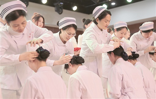 5月11日,南华大学护理学院的老师给毕业班学生授帽,祝贺她们加入白衣天使的大家庭。当天,南华大学护理学院举行授帽仪式、文艺演出等活动,迎接“5·12”国际护士节。