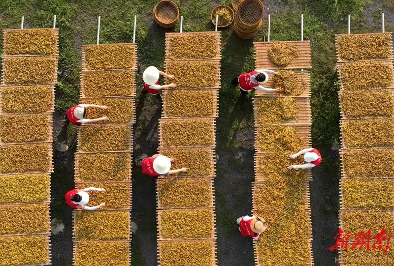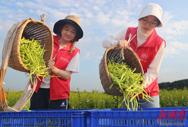7月2日,祁东县黄土铺镇,南华大学衡阳医学院志愿者在帮助村民装框黄花菜。暑假来临,南华大学衡阳医学院暑期“三下乡”社会实践服务团的志愿者们走进祁东县黄土铺镇田间地头,帮助当地村民采摘、晾晒黄花菜,用劳动和汗水助力当地的乡村振兴工作。
