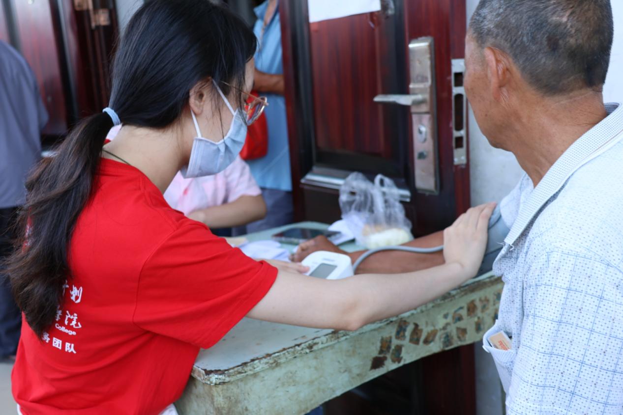 义诊现场,志愿者们分工合作进行基础健康信息测量,耐心解答村民疑问,对血压正常值范围以及平时注意事项等问题一一作了讲解,并对村民们提出了生活习惯方面的建议。