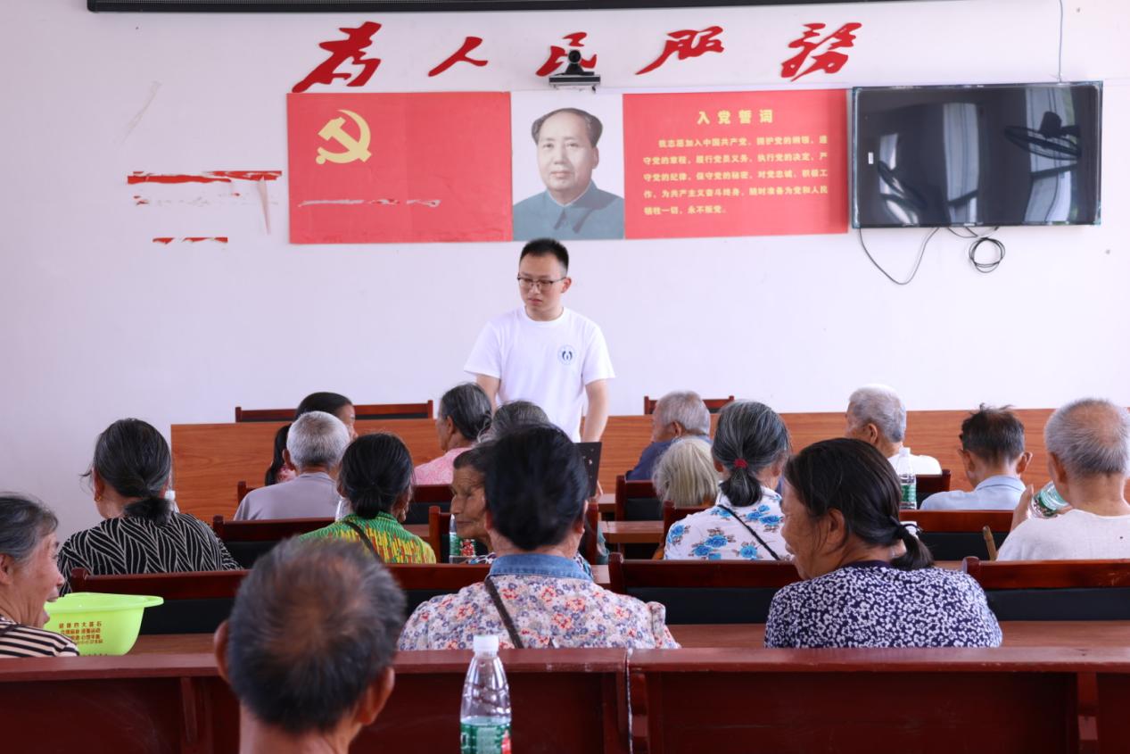 7月12日上午,南华大学衡阳医学院2023年湖南省“芙蓉学子·乡村振兴”公益计划项目志愿服务团队全体成员来到邵阳市绥宁县牛背岭村开展糖尿病知识宣讲,协助当地医疗人员进行健康义诊活动。