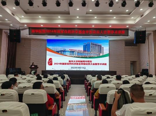 为进一步提升南华大学附属南华医院2024年国家自然科学基金申报的质量和数量,9月19日,南华大学附属南华医院在门诊六楼多功能厅召开了“2024年国家自然科学基金申报动员大会暨学术讲座”。会议特别邀请了中南大学湘雅医院唐北沙教授和华中科技大学同济医学院朱铃强教授进行学术讲座。南华大学附属第七医院党委书记唐小卿教授出席,我院100余名博硕士导师、博士、临床科室主任、科研骨干、研究生及相关有科研兴趣的医护人员参会。会议由医院党委委员、副院长袁梅主持。