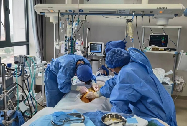 心内科和介入血管外科紧急为患者实施冠脉造影和肺动脉造影,急危重症医学部主任廖谷清、副主任贺承健带领团队为患者实施ECMO治疗。