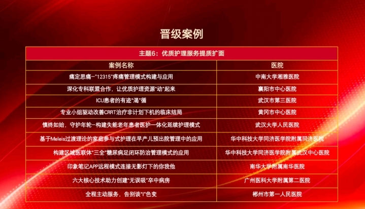 11月中旬南华大学附属南华医院将同其他晋级案例一起,代表中南赛区与华北、华东、东西北、西南4个赛区数百个晋级案例会师海南海口,争夺全国医院擂台赛11个主题的金、银、铜奖,期待再创改善医疗服务全国总决赛的新佳绩。