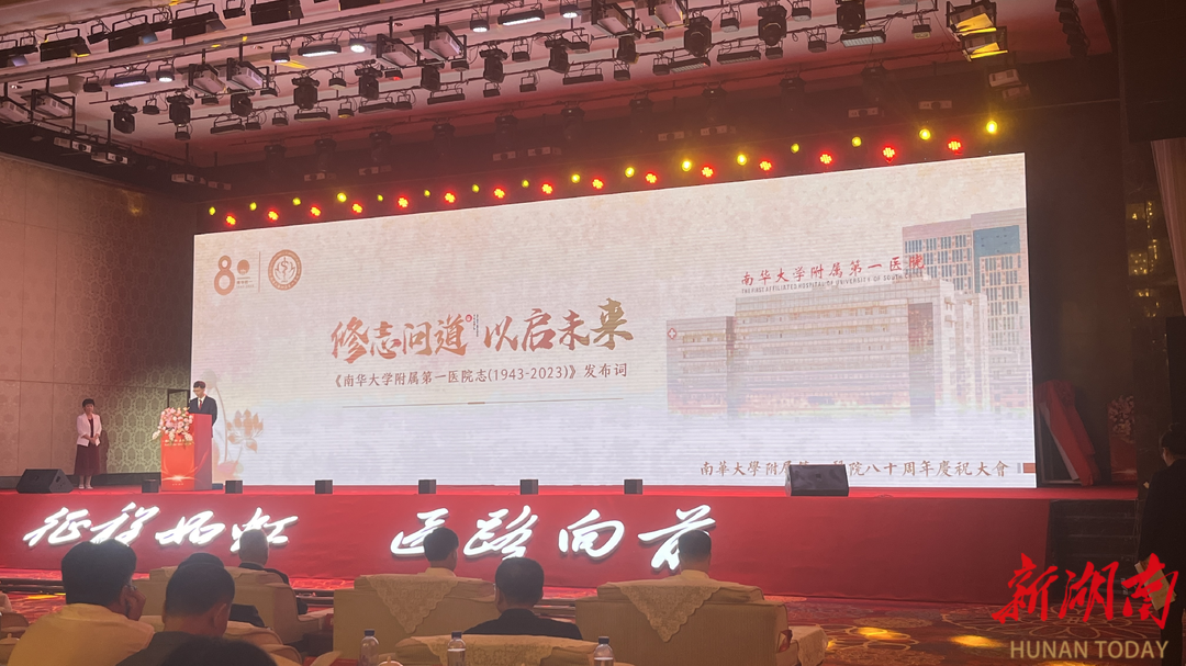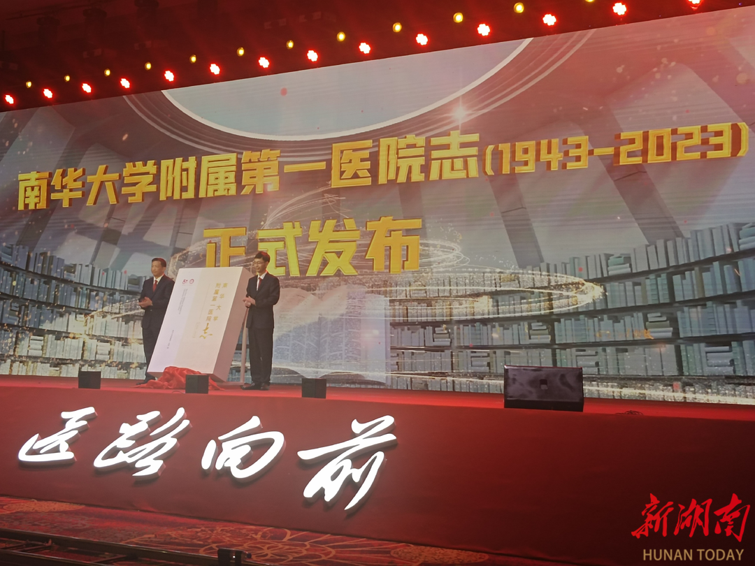 自1943年建院至今,南华大学附属第一医院已走过80年光辉历程。为纪念医院八十华诞,10月19日上午,《南华大学附属第一医院志》首发仪式在该院庆典大会上正式举行,为全院职工献上一份“文化厚礼”。各级省市领导、多位院士及海内外专家、现任领导班子成员、离退休老领导及专家、医院职工及学生代表等近800人见证了该志书的发布。发布会由该院执行院长唐惠芳主持,院长刘祖国与党委书记祖旭宇共同为院志进行揭幕。