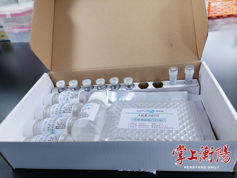 ▲记者在南华大学实验室拍摄到的AKR1B10测定试剂盒样品。