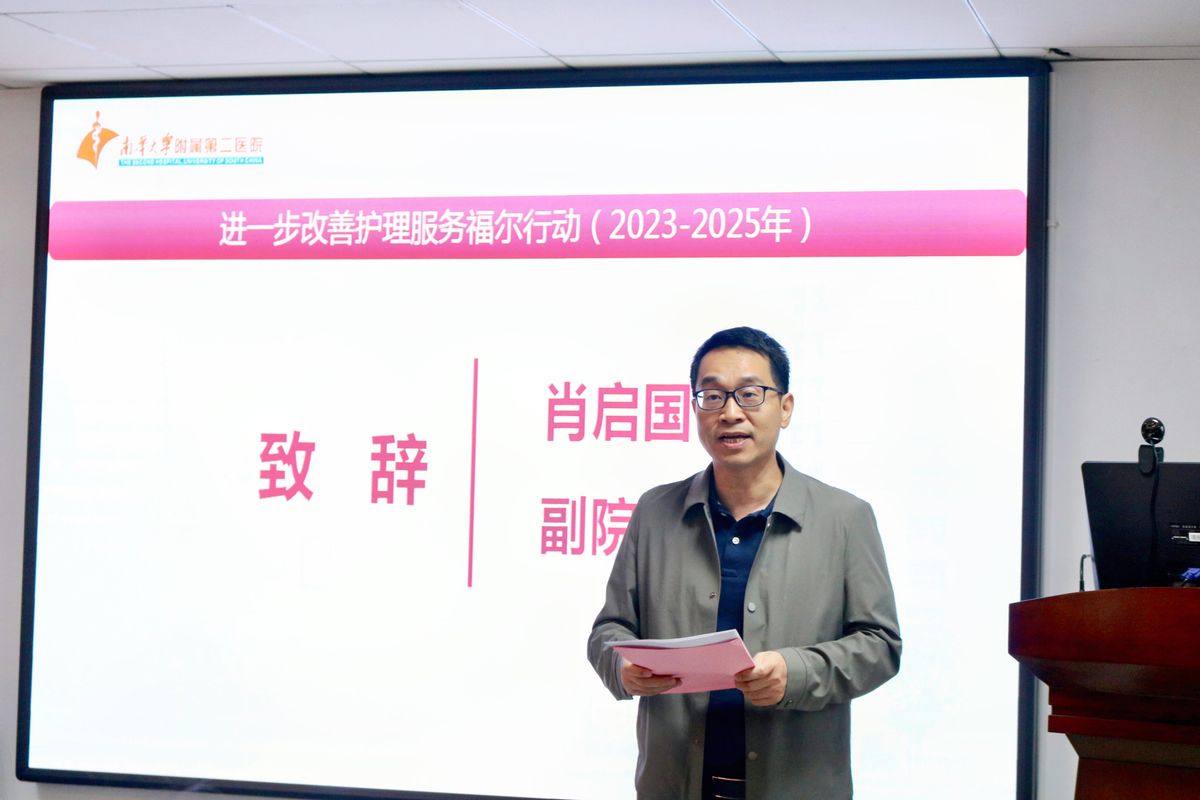 副院长肖启国教授莅临现场并致辞,肖院长指出护理查房是检查护理质量、落实规章制度、提高护理人员业务水平的重要举措,也是护理管理中评价护理程序实施效果的重要一环。希望大家能够通过此次竞赛,搭建以赛促学,以赛提质的交流平台,在今后护理工作中不断学习、成长、精进,推动临床护理事业进步和创新,为医院高质量发展贡献力量。