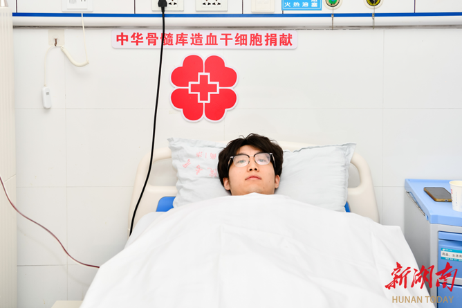 11月27日,南华大学衡阳医学院2023级临床医学专业研究生刘士瑜,在郴州市第一人民医院成了造血干细胞采集,他的造血干细胞将为一名11岁女孩带去希望。