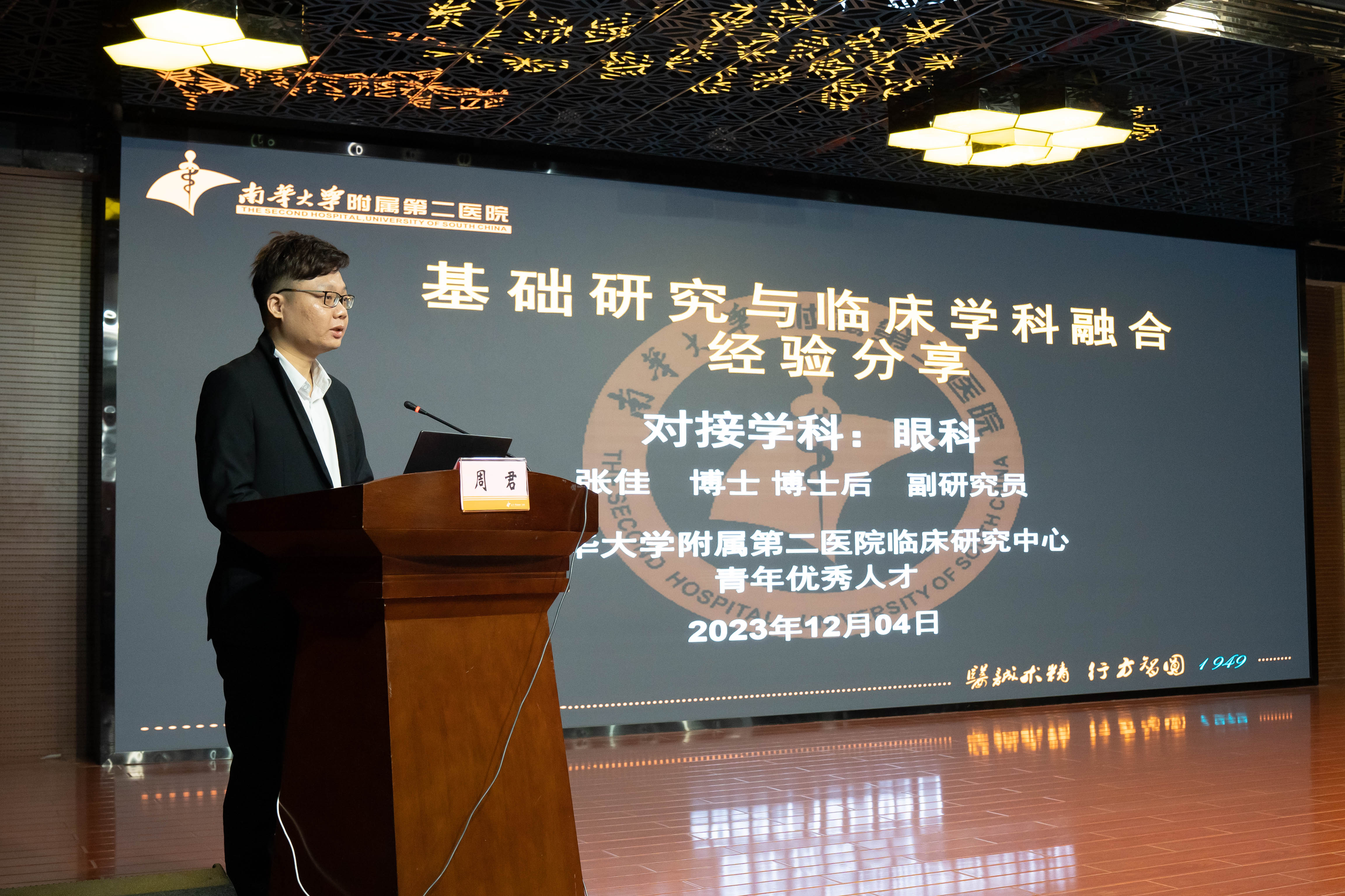 张佳副研究员则分享了他作为基础研究人员如何和临床学科在临床工作、人才培养、科研工作等多方面深入合作,为我院新引进的基础研究人才和临床学科带头人提供了“基础+临床”良性共同发展的典型案例。