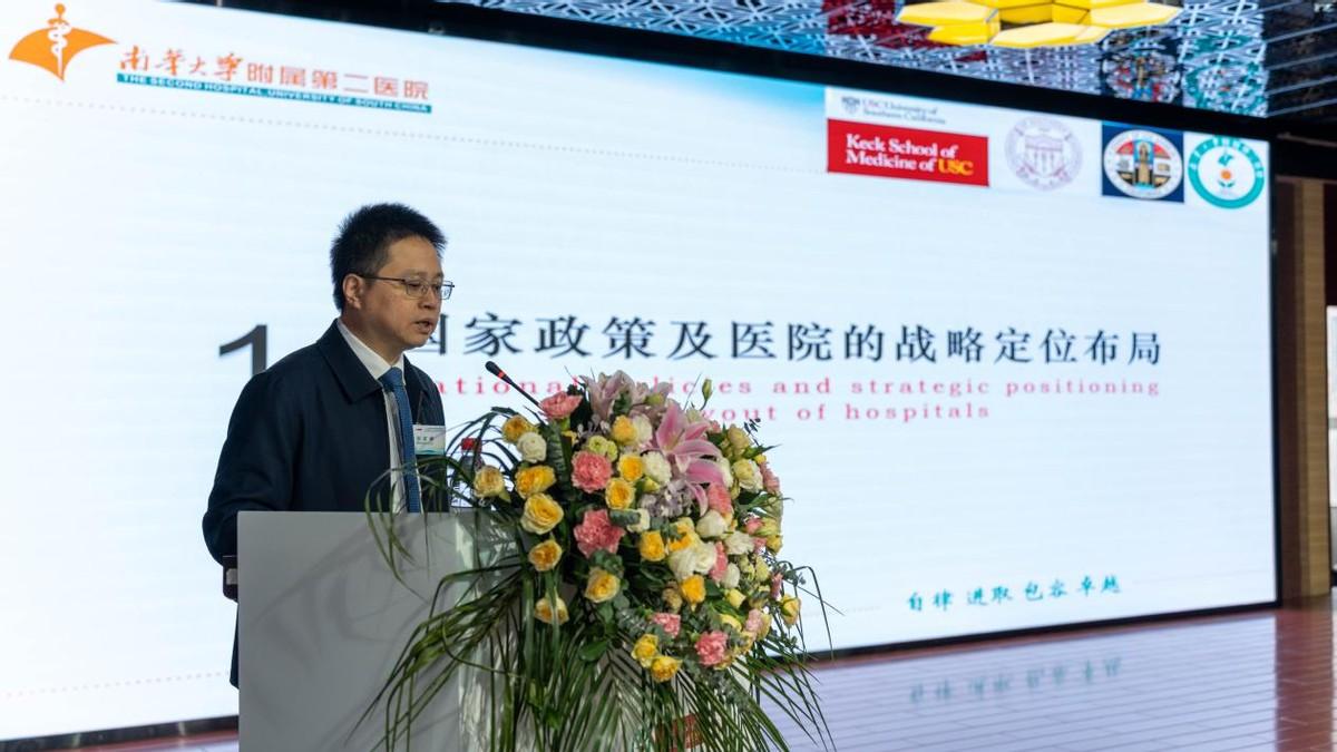 随后,南华大学附属第二医院院长刘文捷从国家政策及医院的战略定位布局、医院危急重症一体化救治体系建设、创伤中心团队建设及人才培养等方面进行了详细讲解。他表示,南华附二医院将建立5G+AI智慧急救中心,全面布局打造衡阳市、县、乡镇全覆盖的三级急救中心高质量示范项目。