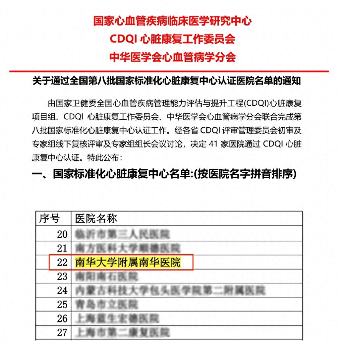 南华大学附属南华医院再传喜讯,医院心脏康复中心成功入选全国第八批国家标准化心脏康复中心认证医院名单。这一殊荣不仅是对医院心脏康复专业能力的高度认可,也标志着南华大学附属南华医院在国家级医疗平台建设上再创新高。