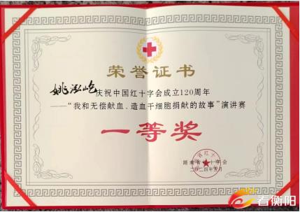 5月11日,湖南省红十字会盛大举行庆祝中国红十字会成立120周年的特别活动——“我和无偿献血、造血干细胞捐献的故事”演讲赛。南华大学附属南华医院重症医学科副主任姚泓屹,以“选择——我与干细胞捐献的故事”为题,深情地分享了自己亲身参与造血干细胞捐献的感人经历。