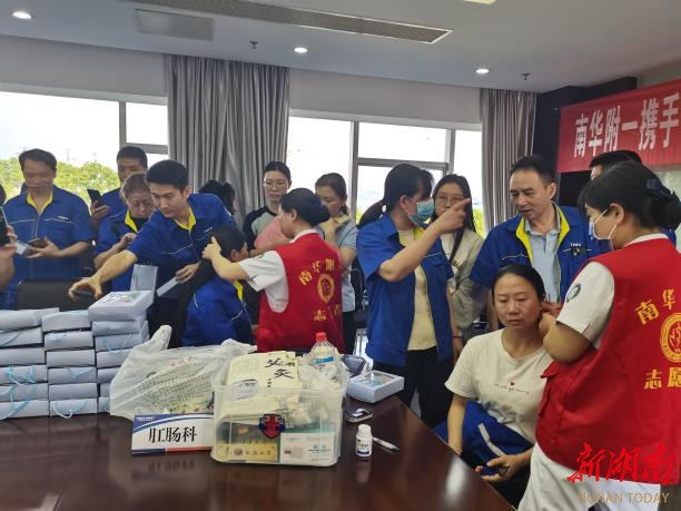 此外,还为企业职工提供了免费测量血压、测血糖、肛肠疾病筛查、中医适宜技术:平衡火罐、耳穴压豆、虎符铜砭刮痧、高危足的筛查、颈肩腰腿疼的康复治疗、颈动脉斑块的超声筛查等服务,并为企业职工发放专科健康宣教手册、礼品、药品。