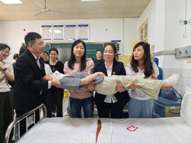 为深入贯彻《湖南省现场救护条例》精神,提升公众现场救护的认知与能力,广泛传播急救知识与技能,并推动公众自救互救体系的建立健全,南华大学护理学院于5月19日在护理实验中心举办了第一目击者急救培训班。此次培训得到了南华大学附属南华医院的大力支持,王莉莉、吴良辉、江勇三位资深医疗专家受邀担任培训导师,为学院教师及研究生提供专业指导。南华大学护理学院院长李忠玉、副院长王蓉及曾谷清亲临现场,共同见证了这一重要时刻。