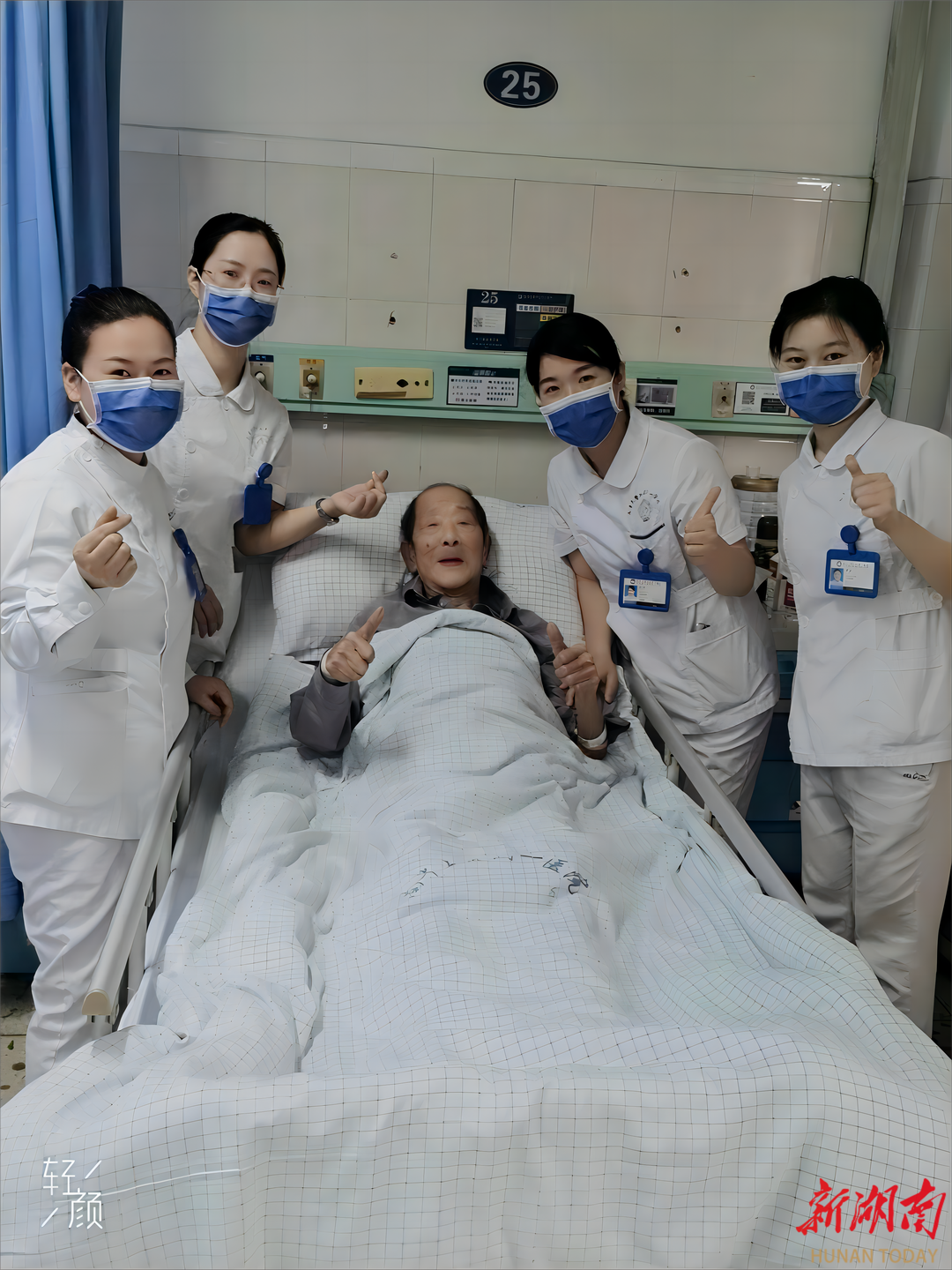 经过一周的治疗与护理,蒋爷爷的病情得到了显著改善,他对前来查房的医护人员竖起了大拇指,表达对他们的感激之情。