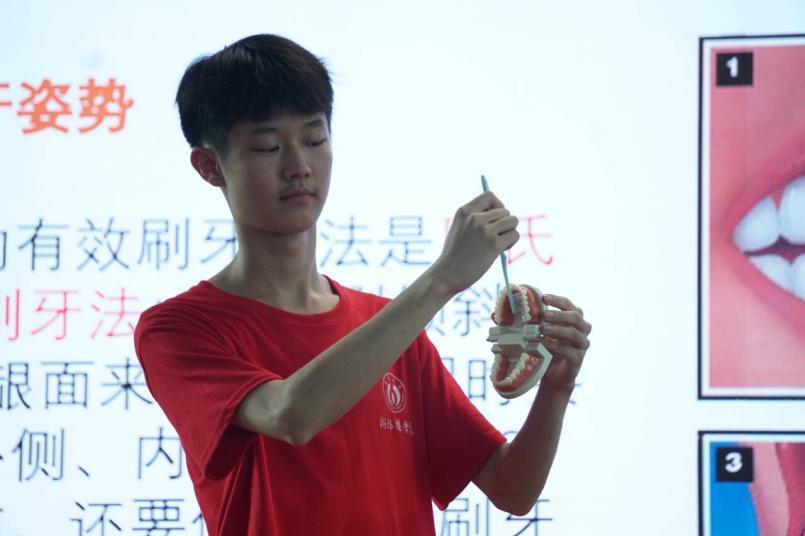 讲座期间,刘宇轩还设置了互动问答和示范操作环节,面对提出的问题,在场的小朋友们积极参与,现场气氛十分活跃。针对村民们提出的关于口腔健康的具体问题,刘宇轩耐心解答,并现场演示了正确的刷牙和牙线使用技巧。