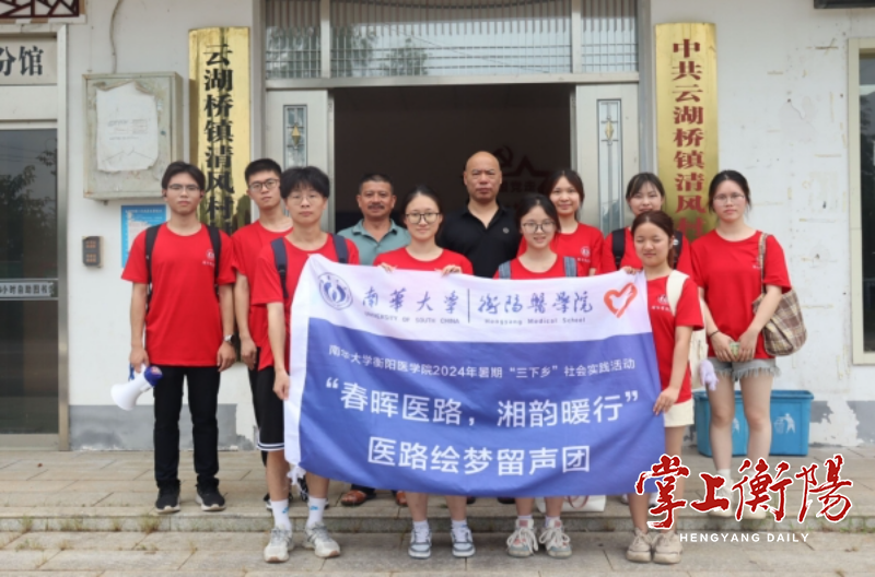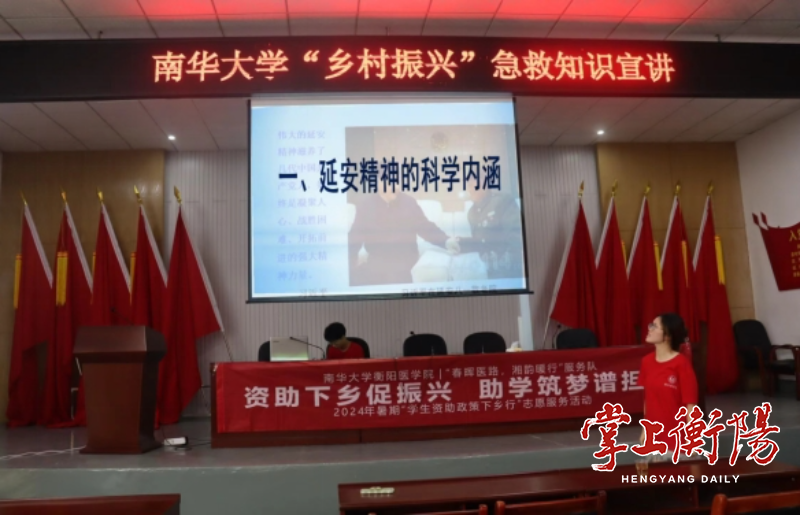掌上衡阳7月14日讯(通讯员文/王子皓 图/罗紫瑜)7月12日,南华大学衡阳医学院全国“乡村振兴”志愿团暨全国七彩假期医路绘梦留声团,在湖南省湘潭市雨湖区云湖桥镇开展延安精神宣讲活动。