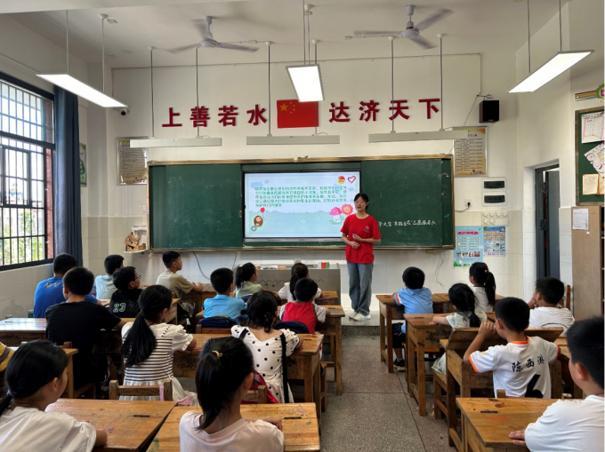 大学生云报7月8日讯(通讯员 刘薇)2024年7月8日,在明媚的清晨阳光下,南华大学衡阳医学院“医路生花”志愿服务队有一群身着红色服饰的志愿者化身成“健康守护者”,踏入湘龙村的校园,为小朋友们带来了一场关于“流行病与常见病”的趣味科普盛宴。这不仅仅是一场知识的传递,更是一次心灵的交流,让小朋友们在轻松愉快的氛围中,学会了如何成为自己健康的小卫士。