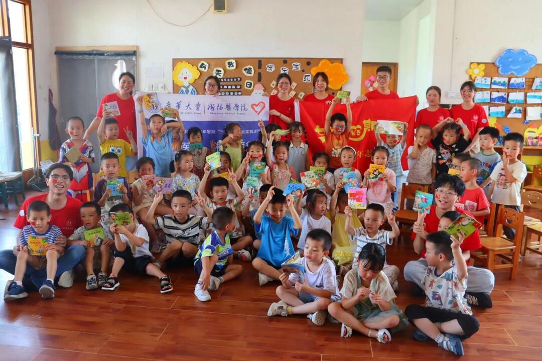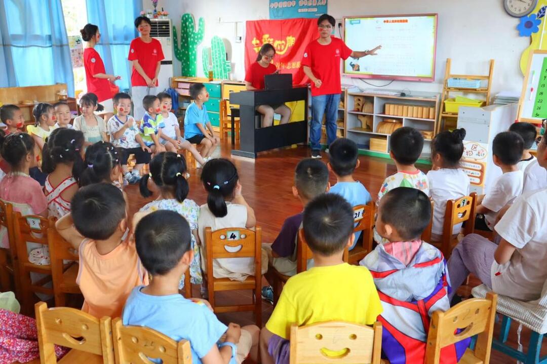 近日,2024全国关爱行动“七彩假期”志愿服务团——南华大学衡阳医学院“医路绘梦留声团”社会实践服务团来到了湘潭市雨湖区楠竹山镇江南幼儿园,开展了以“学国歌 颂中国”为主题的爱国主义教育课程。