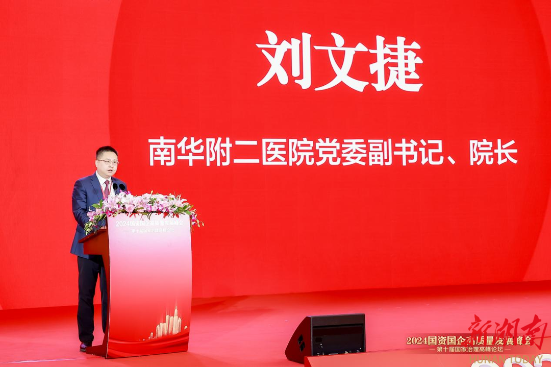 南华附二医院党委副书记、院长刘文捷在“2024国企国资高质量发展峰会——第十届国家治理高峰论坛”上,分享该院在“区域创伤与急危重症救治”方面的创新做法和显著成效