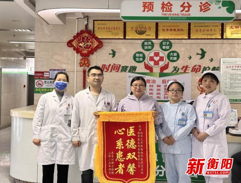 4月12日,南华大学附属南华医院急诊科大厅内,一面印有“心系患者,医德双馨”的锦旗,承载着从北京远道而来的刘女士无尽的感激与敬意,被郑重地交到急诊科副主任医师杨军及医护团队手中。这场跨越千里的暖心重逢,背后是一段与时间赛跑、用专业守护生命的动人篇章。