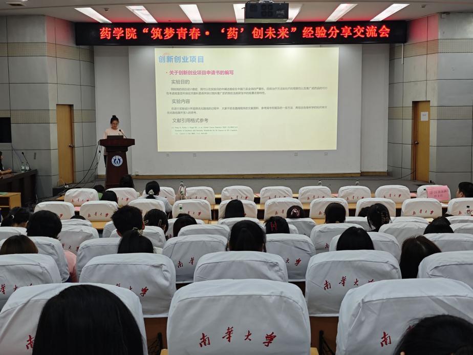 近日,南华大学药学院“筑梦青春·‘药’创未来”创新创业经验分享会举办。学院特别邀请药拔班的徐司晨、罗湘云两位同学现场分享主持大创项目的经历与心得,为参会学生参与创新创业实践提供参考。