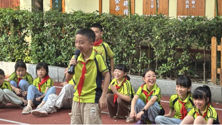 破冰游戏“大风吹” 游戏徐徐拉开团辅活动的帷幕。小朋友们手拉手围成圆圈,短短几分钟的“大风吹”,热烈的气氛消弭了同学们之间的陌生感,为后续活动营造出轻松愉悦的氛围。紧接着,“桃花朵朵开” 游戏将现场气氛推向第一个高潮,30秒的限时挑战,不仅考验着大家的反应速度,更激发了团队协作的紧迫感。有孩子因落单而俏皮吐舌,也有小组成功组队后击掌欢呼。“你画我猜” 环节,成为检验团队默契的试金石。操场上交织着孩子们欢乐与竞争欢呼。