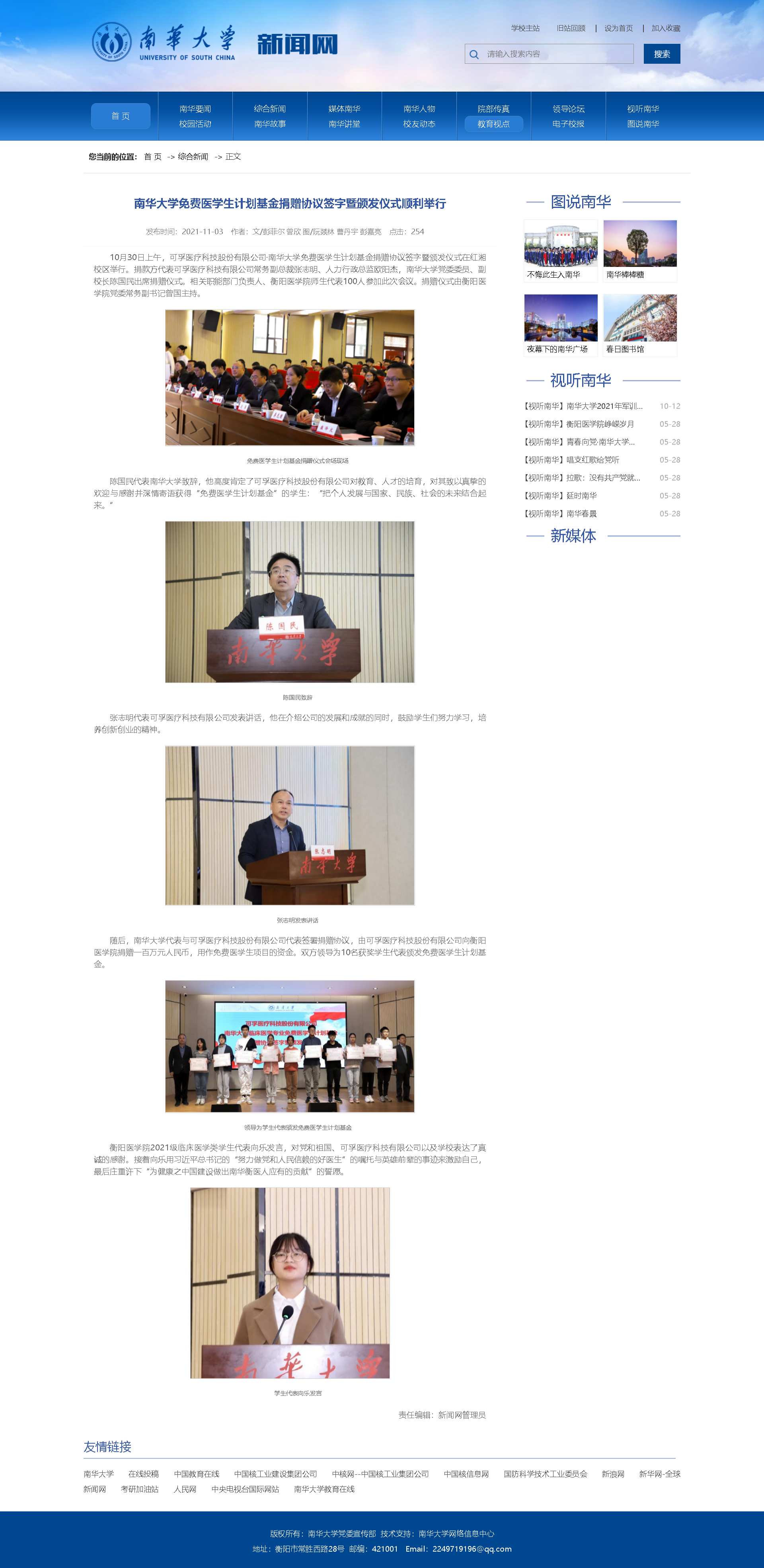 随后,南华大学代表与可孚医疗科技股份有限公司代表签署捐赠协议,由可孚医疗科技股份有限公司向衡阳医学院捐赠一百万元人民币,用作免费医学生项目的资金。双方领导为10名获奖学生代表颁发免费医学生计划基金。