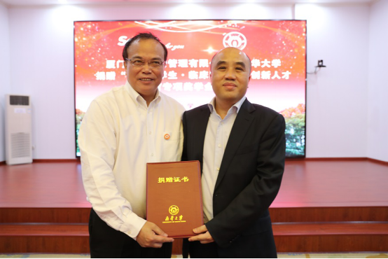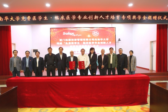 随后,张灼华与周华松签订捐赠协议,周华松向母校捐赠1000万元人民币设立“南华大学免费医学生·临床医学专业创新人才培育专项奖学金”,校长张灼华代表学校接受捐赠,并向周华松颁发捐赠证书。