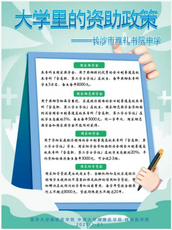 为进一步加大对国家奖助政策的宣传力度,进一步宣传南华,根据学校“寒假资助政策下乡行”活动要求,在衡阳医学院2020级负责人、辅导员老师张茜的悉心指导下 ,2022年1月22日下午,衡阳医学院2020级临床01班王楚楚、张艺千两位同学与中南大学湘雅医学院的陈楠睿、桂林医学院的陈信佳组成寒假资助政策下乡行志愿小分队,在长沙市雅礼书院开展政策宣讲活动。
