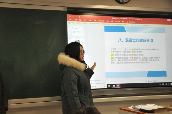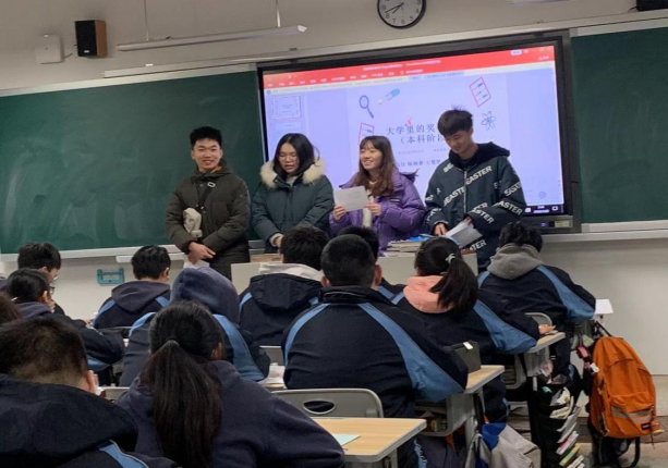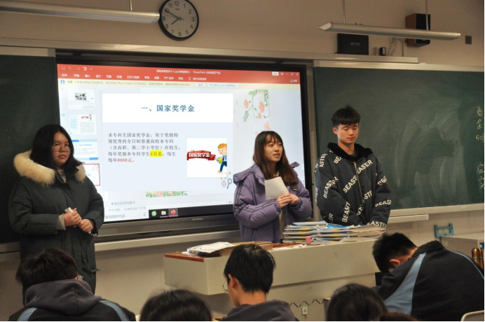 活动伊始,小分队的同学们就向高三学生发放了“大学里的奖助政策”宣传单,他们通过PPT详细解读了国家有关奖助政策,包括:国家奖学金、国家助学金、国家助学贷款、校内资助、应征入伍服义务兵役学费补偿贷款代偿及学费减免、退役士兵教育资助等。队员们还开展了有奖问答、游戏互动等活动,活跃了现场气氛,同时让高三学子对国家奖助政策有了更加深入的了解。