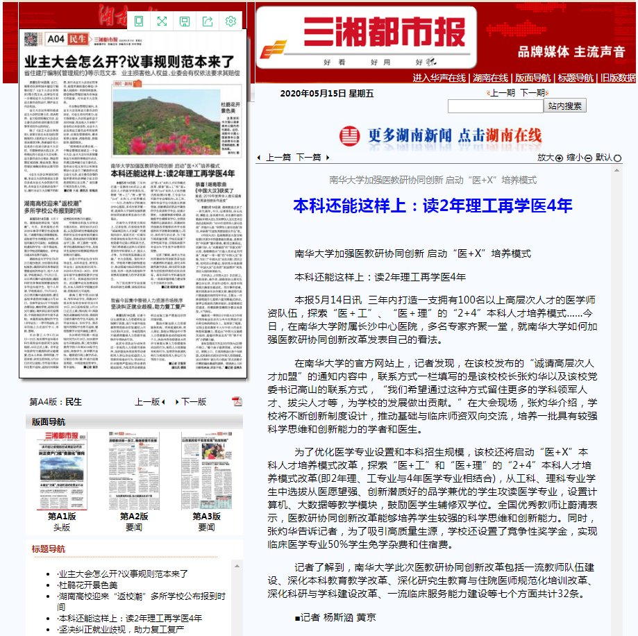 上一条:【新华社、光明网、湖南日报】加快推进“双一流”建设 生态环境部、国家卫健委、湖南省人民政府共建南华大学 下一条:【中新网】献血迎“五四”,南华大学287名医学生志愿加入中华骨髓库