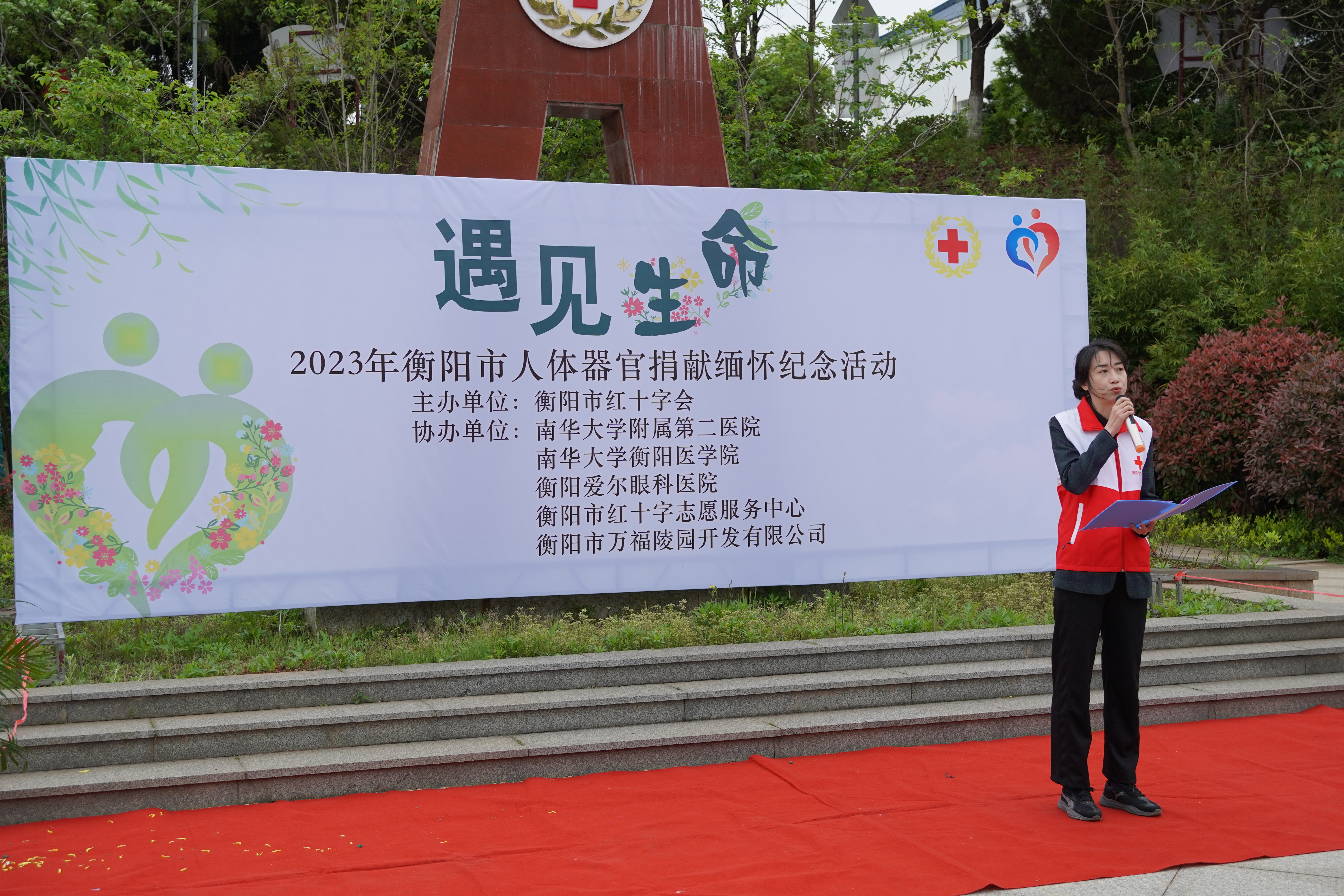 为缅怀平凡而伟大的遗体和人体器官捐献者,弘扬他们无私奉献的精神,4月4日上午,基础医学院20余名学生代表在人体形态学实验中心周小兵、姚婕、王潜等老师的带领下参加了由衡阳市红十字会主办的“遇见生命”2023年衡阳市人体器官捐献缅怀纪念活动。