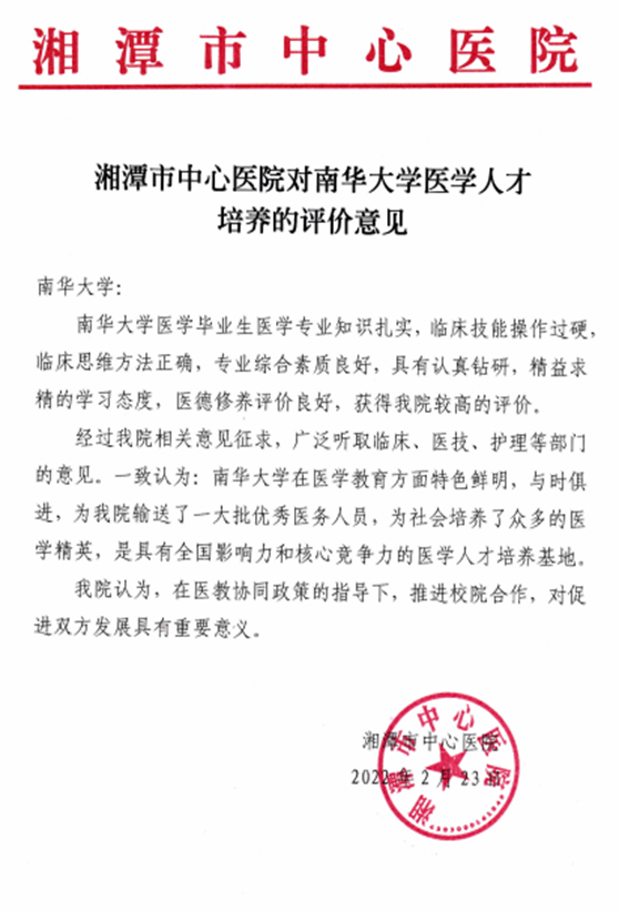 下一条:怀化市第一人民医院关于南华大学医学人才培养评价